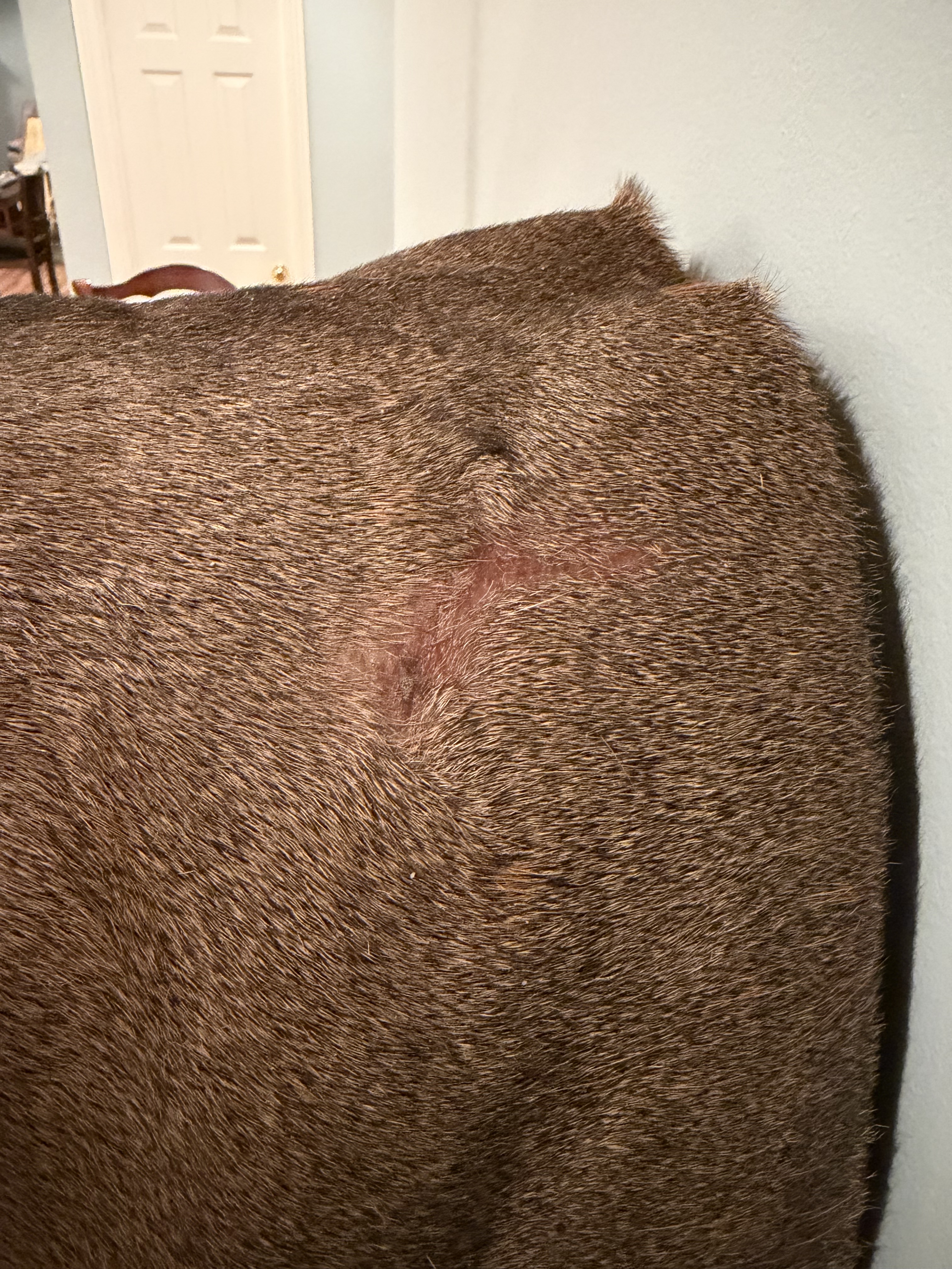Now here’s why I tell this story. Recently I received the deer back from my taxidermist. He is truly a sight to behold. It is hard to find an angle to view him in which you can count all of his points and see his unique characteristics. However, in the exploration of this beautiful mount we noticed something else. A very unique, distinct, 3-blade arrowhead shaped scar on his back. Apparently, the year before, I had managed to hit him in one of the few non-fatal locations on his neck. The arrow had passed over his left shoulder, beneath the spine and above a major artery. This resulted in a wounded, yet viable deer.